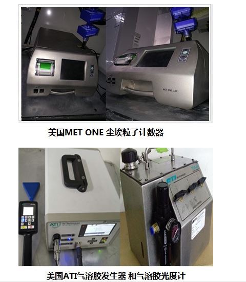 昆山昌瑞空调净化技术有限公司使用的气溶胶发生器为ATI TDA-6C.手持式Laskin喷嘴型气溶胶生器,它直接使用空气而不需要压缩气体作为动力。在20Pa工作压力下, 气流速度为50~2025f3/min时,可产生10~100ug/mL 浓度的多分散性亚微米级油尘气溶胶。使用的气溶胶光度计为ATI 2H型光度计,动态测量范围为0.00005~120ug/L,采样流量为1F3/min(28.3L/min)。